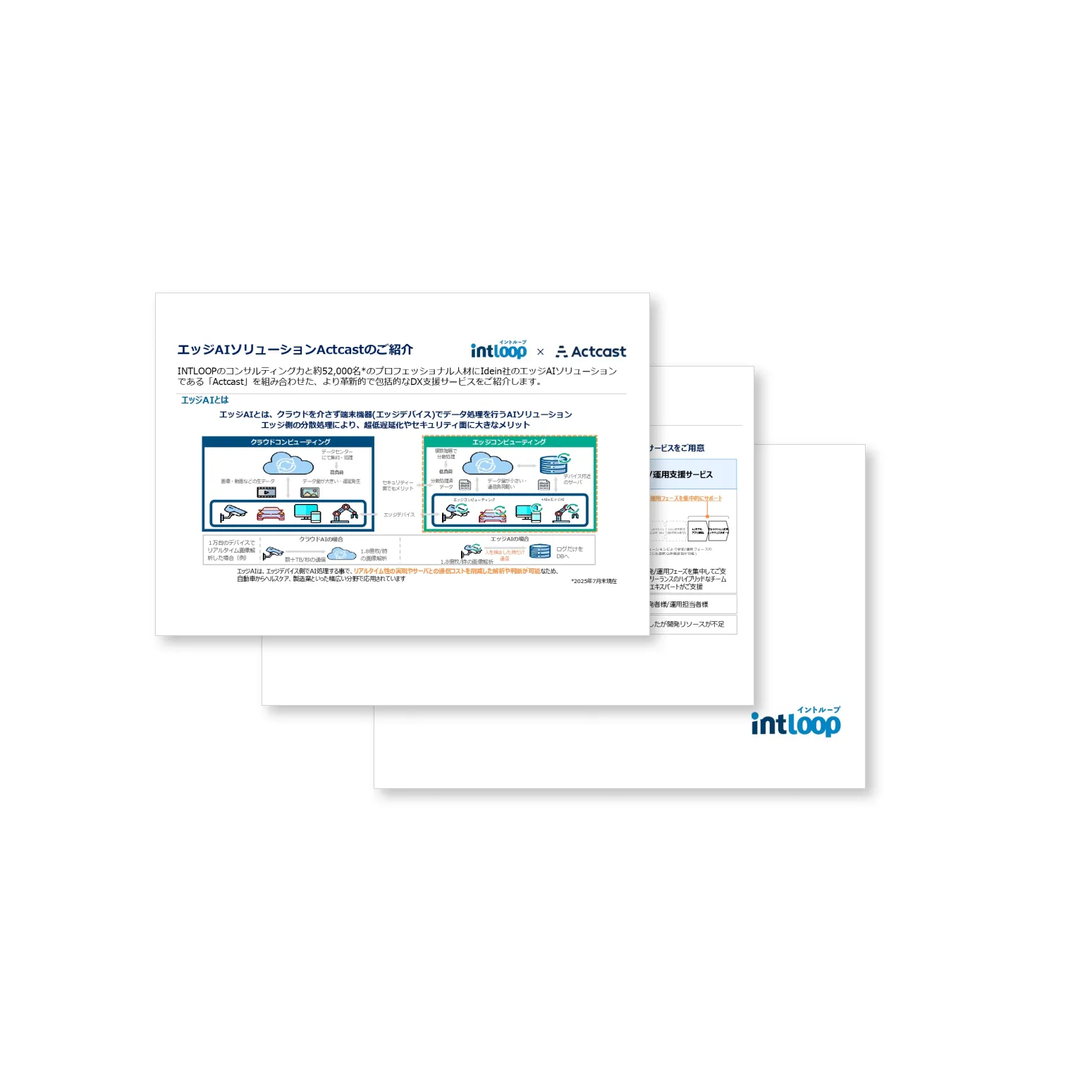INTLOOPのコンサルティング力と約41,000名のプロフェッショナル人材にIdeinエッジAIソリューションである「Actcast」を組み合わせた、より革新的で包括的なDX支援サービスをご紹介します。