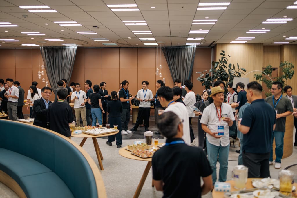 開放的でありながら温かみのある空間で、参加者同士が軽食やドリンクを片手にリラックスしながら交流を楽しむ姿が見られました。