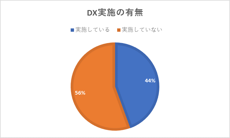 今回の調査の中で、「デジタルトランスフォーメーション(以下、DX)の実施の有無」を聞いたところ、全体の44.4%の企業が「実施している」と回答しました。