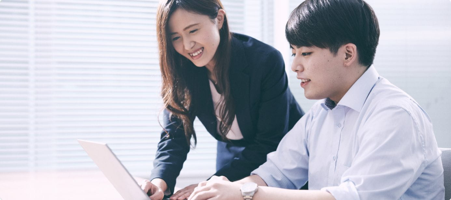 配属後の不安を和らげ、早期にチームへ馴染めるよう、同職種で年齢の近い社員が1対1でフォローします。日々の課題整理や悩み相談だけでなく、キャリアやマインド面まで寄り添い、ステップアップできるよう支援します。