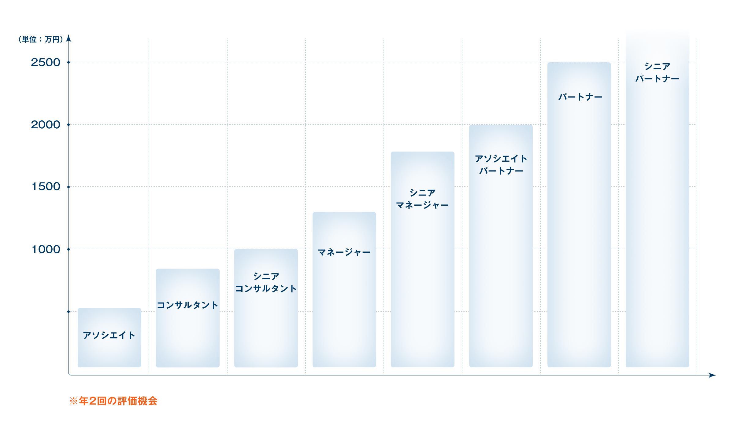 それぞれの階級における給与の目安は以下になります。