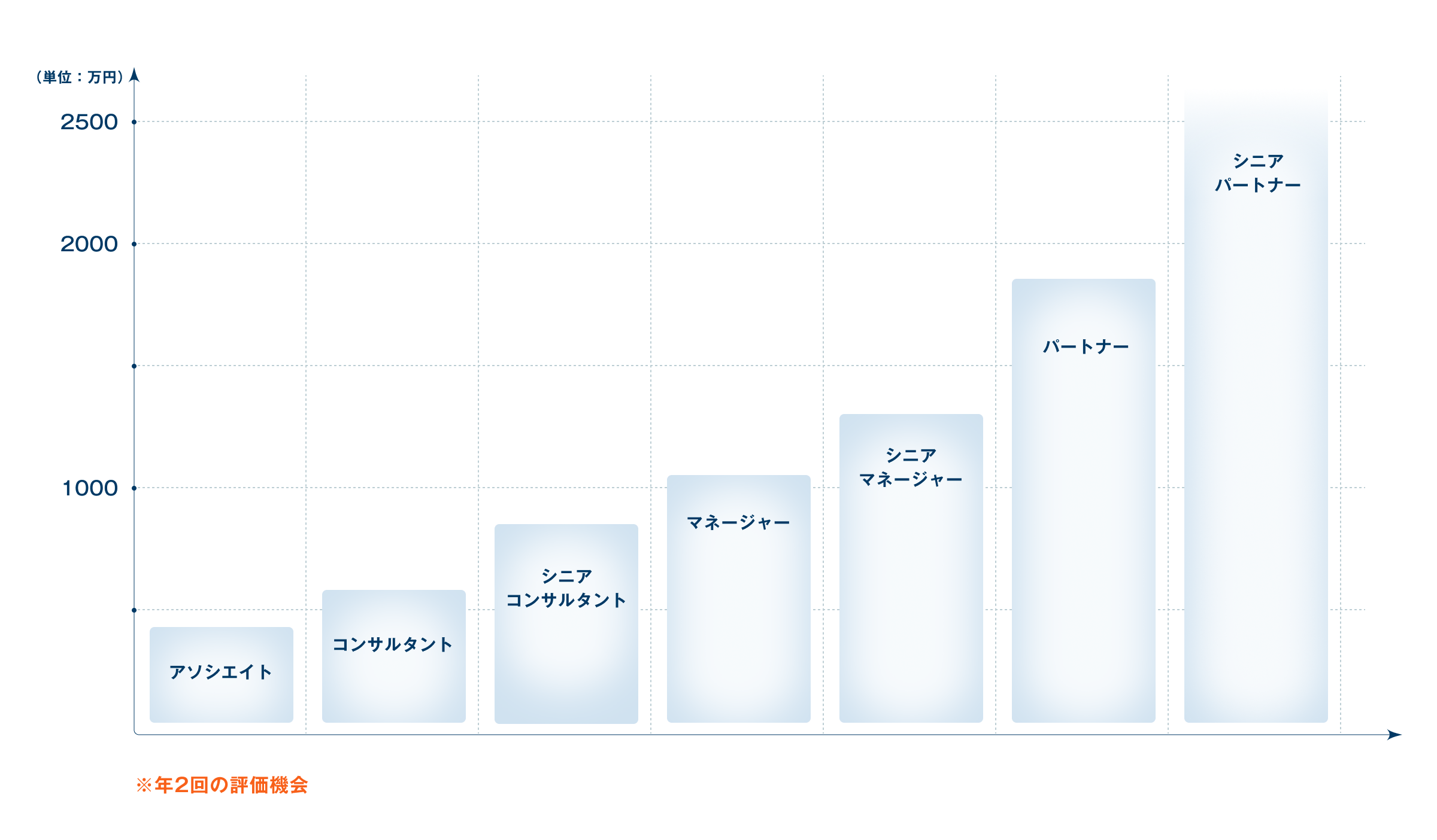 直近の平均昇給率は8.97%と全国平均と比べても高く、実力に応じた評価が報酬へ反映されやすい環境です。それぞれの階級における給与の目安は以下になります。